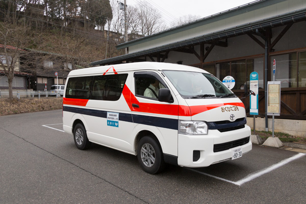 神岡地区には循環バスが走っているのですが、地元の中日新聞販売店さんが開業80周年を記念して、このうち1台を2017(平成29)年3月に神岡鉄道カラーにラッピング。「おくひだ3号」と名づけられたこのバスは、この晴れの日にも神岡の街を巡回していました。