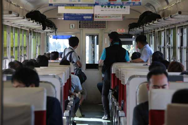 しかし陣取った席は南側だったのですが、この日は日差しが強く、かなり暑かったです。10020形、一応冷房化はされているのですが、どうも効きが悪いようで…。