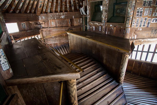 のぼり詰めると、放射状に垂木が広がる天井が出迎えてくれます。