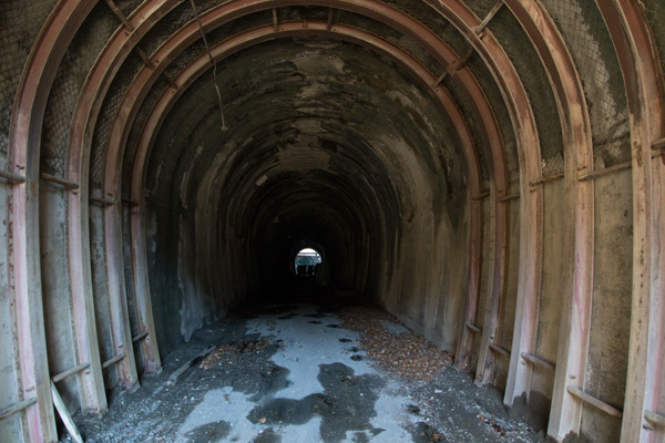 入り口付近は補強されていますが、基本的に内部はコンクリート覆工。