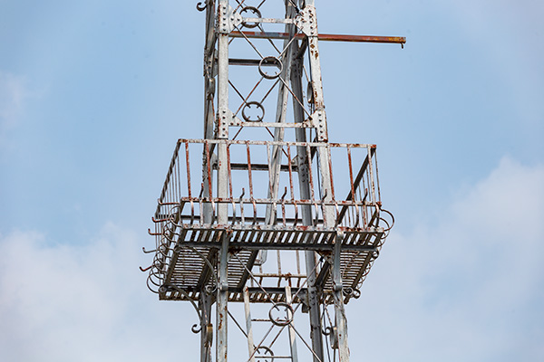 見張台は四角形で、高欄は手摺が丸鋼製、水平材と下部外縁が等辺山形鋼製、垂直材が平鋼製。垂直材の下部は半円状に外側へ張り出している。手摺は、もともと上段の水平材がそれであったが後から丸鋼部分が継ぎ足されたようにも見える。