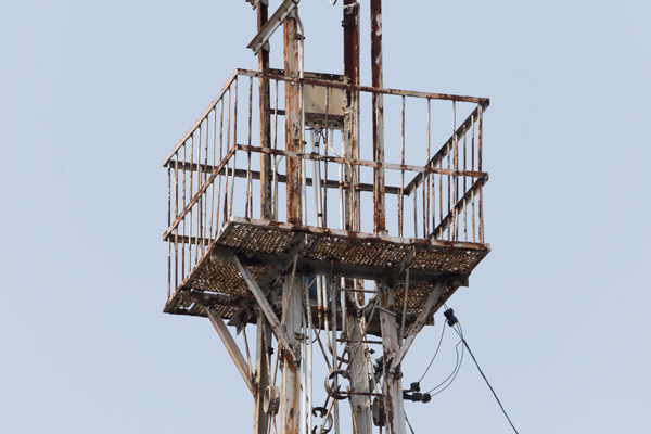見張台は四角形で、手摺、水平材、下枠が等辺山型鋼製、主材は丸鋼製で、特に装飾的な要素は見られない。