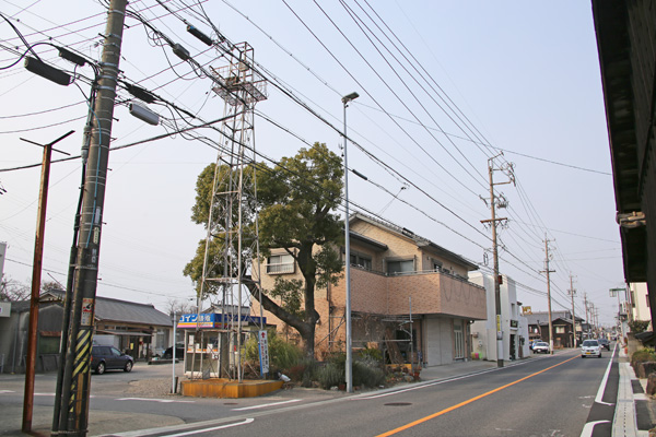 県道252号沿い、大和橋西交差点の北方に建つ櫓。屋根は無いが、主材の天端に四角形に水平材が渡されており、かつては屋根があったのではないかと推測される。
