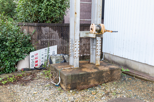脚は二本でH形鋼を用いており、上部・中部・下部にそれぞれ一本ずつH形鋼の垂直材を設けている。また、中間部には干したホースが風で暴れるのを防ぐためと思われる柵が脚を一周するように設置されている。