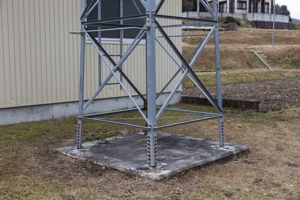 国道153号から外れた市道沿いに立つ櫓。四角屋根に四角見張台。屋根下のホース干し器具が大きく目立つ。 主材、水平材、斜材とも等辺山形鋼で各節の結合がボルト締結になっているなど、比較的建造年次は新しいものと思われる。 梯子は一段で桁外設置。転落防止柵が設けられている。