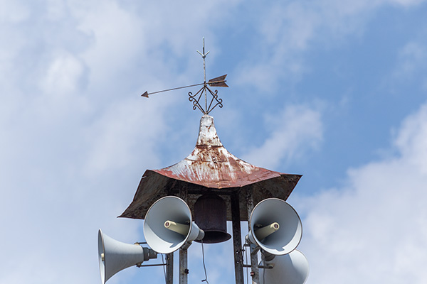 梯子は三段で、いずれも桁内設置。上部の踊り場は、二方向に向けたバルコニー状の張り出しがあり、小屋根が掛けられた半鐘も設置されている。高欄のデザインは、見張台に準じたもの。