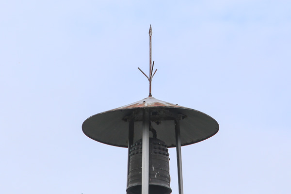 見張台は円形で、高欄は手摺部と底部外縁が等辺山形鋼製、垂直材は等辺山形鋼製1に対して丸鋼2の割合で併用されている。水平材は丸鋼製。半鐘は屋根を支える三角形の梁に吊り具を介して吊るされている。