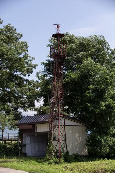 秋田内陸縦貫鉄道羽後太田駅前に立つ櫓。円形屋根に八角形の見張台。屋根上には風向計と纏・鳶口をデザインした屋根飾りあり。風向計の矢羽部分は二股に分かれている。 見張台の欄干部には楕円形の装飾あり。梯子は一段で中間に簡易な柵を設けた足場が用意されている。蔦が全体を覆い、あまり利用されていない様子。
