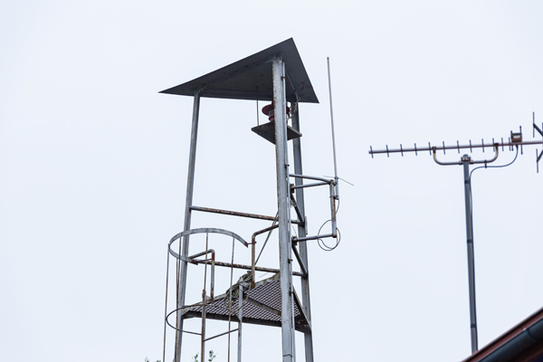 屋根はごく浅い三角形で、避雷針や風向計、屋根飾りなどの装飾は見られない。見張台も張り出しのない三角形で、高欄と水平材は鋼管製。