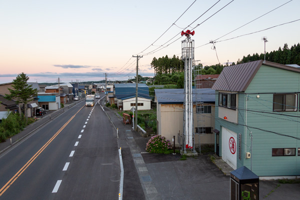 国道4号沿い、青い森鉄道清水川駅の北西すぐ傍に建つ櫓。見張台は四角形で屋根は無く、上端部は四方に渡された梁の上に、サイレンと六方向へ向けてスピーカーが設置されている。梁にはホース干し用のフックが取り付けられている。見張台の各角はプレートに六角ボルトで接合されている。