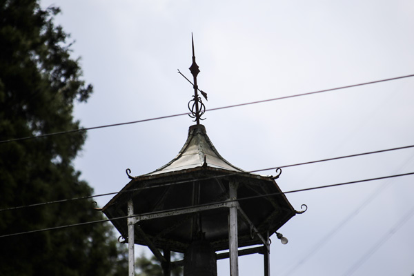 国道349号から外れた旧道にある集落に立つ櫓。民家の敷地にあるため接近することは出来ない。 反りのある深めの八角屋根には避雷針、風向計、屋根飾り、隅棟に蕨手。風向計は先端が矢尻ではなくY字の先割れになっているのが珍しい。 見張台の欄干は上端部に曲線を用いた装飾が施されている。 梯子は三段でいずれも桁内設置。踊り場は上段が張り出しあり、下段が足場のみとなっている。