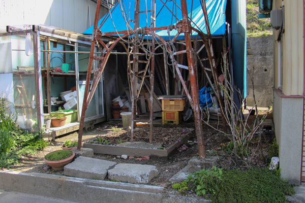鮫川村の中心部、バイパスができて閑散とした国道349号沿いに立つ櫓。住宅の並ぶ手狭な場所に消防団詰所と共に立てられている。 屋根はかなり深めで反りのついた八角形。頂部に避雷針、屋根飾り、隅棟に幅広で巻きの少ない蕨手が設けられている。見張台と上段踊り場の欄干にも細やかな装飾あり。 梯子は三段で、踊り場は上段が張り出しのあるもので、下段は足場のみ。