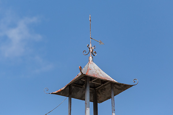 見張台は大きく隅切りされた四角形で、高欄は手摺と下部外縁が等辺山形鋼製、水平材と垂直材が平鋼製で、垂直材の下部は外側へ向けて半円状に突き出している。床板は平鋼を簀の子状に並べたもの。