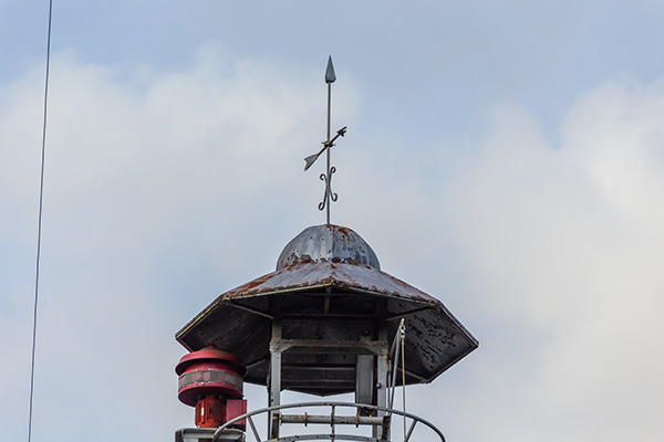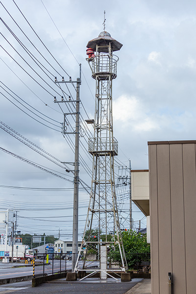 見張台は円形で、手摺と水平材が平鋼製、垂直材が角型鋼管製で、垂直材には平鋼をS字状に曲げ加工した装飾が線対称に施されている。手摺部の外周にはホース干し用の竿が巡らされている。