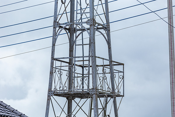脚は四本で、主材と水平材が等辺山形鋼製、斜材はリング状のバックルで締結している。各節の接合にはプレートを用いており、主材とはリベットで、水平材、斜材とは丸頭ボルトで締結されている。