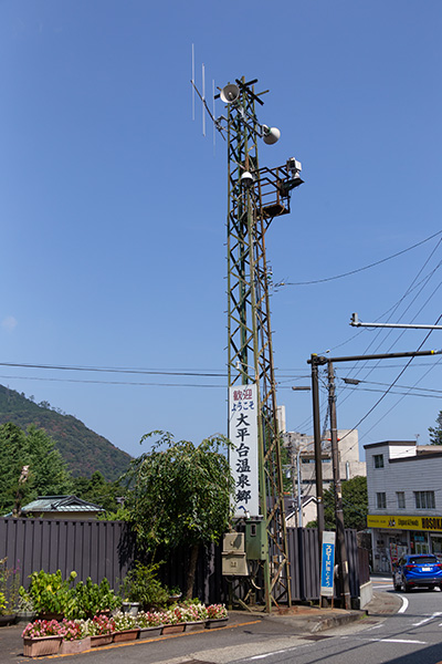 脚は四本で、主材、斜材ともに等辺山形鋼製。斜材はワーレントラス状に組まれており、水平材は設けられていない。中間部には、温泉の町らしく「歓迎 ようこそ 大平台温泉郷へ」と記された歓迎看板が設置されている。