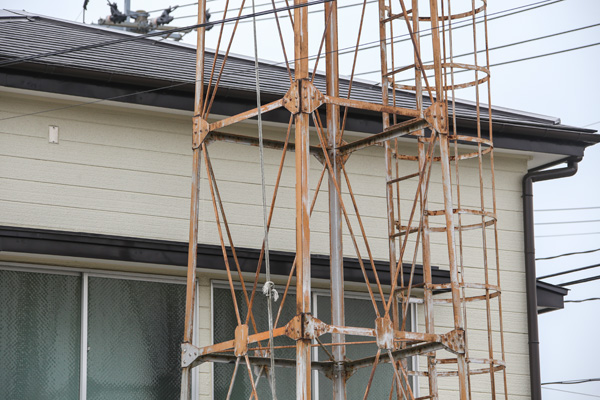 JR東日本石巻線渡波駅の東方、宮城県水産高校南側の市道三叉路の中央に建つ櫓。見張台は四角形で、屋根、半鐘ともに設けられていない。高欄は手摺と外縁が等辺山形鋼製で、垂直材は◇と+を合わせたような文様状にデザインされている。梯子出入口は観音開きの門扉の様になっており、閂も設けられている。手摺の外周上部には、鋼管製のホース干し竿が全周にわたって大きく張り出している。
