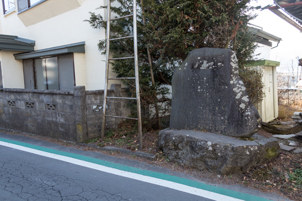 国道20号からJR中央本線を越えて東側に並行する旧甲州街道沿いに建つ火の見梯子。半鐘は頂部からやや下、上から二段目の足場横から張り出した竿に小屋根を掛けて吊るされている。 主材は鋼管、足場は丸鋼製で、上部より下部が広い八の字型になっている。通りに面した側から奧側へ向けてやや倒れこむように傾斜がついており、それをコの字型に組んだ主材と同じ鋼管と支柱で支えている。