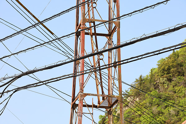 脚は四本で、主材、水平材が等辺山形鋼、斜材が丸鋼をリング状のバックルで締結したもの。下から二節目のみ等辺山形をX字状に組み交点に当て板がされている。