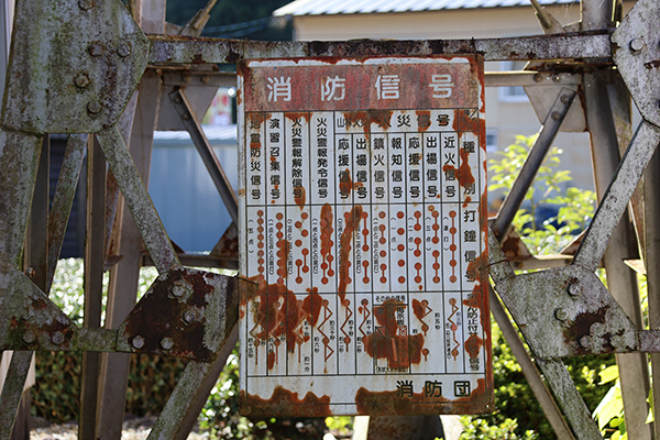 見張台は円形で、高欄は手摺が鋼管製、垂直材は平鋼で上部に向けて外側へ円弧状に張り出した形状となっている。梯子の踊り場と共に高欄に板が当てられているのが外見的な特徴となっている。