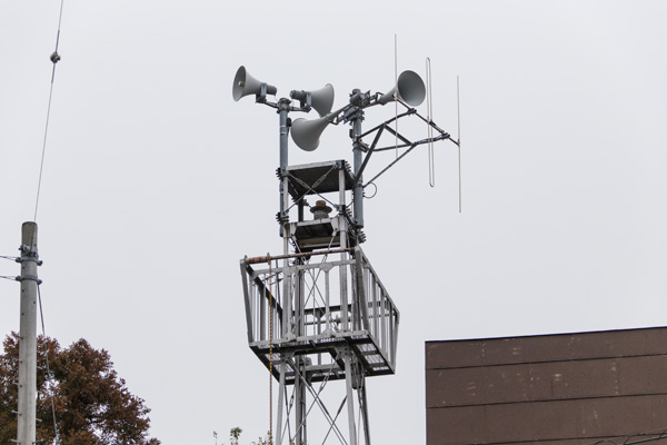 国道246号厚木街道の旧道と思われる市道沿い、神社の傍らに立つ櫓。屋根は平らな板を脚部の天端に載せただけの簡易なもの。スピーカーやアンテナが林立している。 見張台は四角形で、二方向にホース干し竿とそれを支える方杖が設けられているので、遠目には逆台形にも見える。 梯子は二段で上段が桁内、下段が桁外設置。中間には張り出しのない踊り場があり、半鐘が吊るされている。