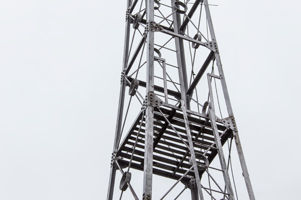 町田市再東部の閑静な宅地の中にある寺の敷地内と思われる角地に立つ櫓。屋根は平板で脚部天端から少しだけ張り出して庇のようになっている。見張台は八角形で、二方の辺にホース干し器具が張り出している。 梯子は二段で上段が桁内、下段が桁外設置。中間には張り出しのない踊り場があり、出入り部分はブレースがなく簡易な欄干がゲートのように取り付けられている。
