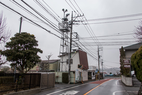 小田急電鉄小田原線鶴川駅南東部、高台の市道沿いに立つ櫓。屋根は平板で、両側から太い丸柱で支えられたスピーカーがよく目立つ。見張台は四角形で、二方向にホース干し竿と方杖が張り出す形状。 梯子は二段で上段が桁内、下段が桁内設置。張り出しのない踊り場部分には、半鐘が吊るされている。交通量の多い市道に面していることからか、下段の梯子にはリング状の転落防止柵が巡らされている。