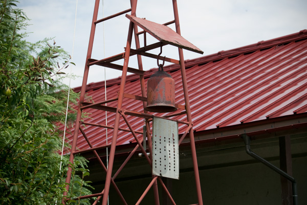 脚立のような形状の簡素な櫓。主材・斜材などすべて鋼管で造られている。 半鐘は中ほどに吊り下げられており、小さな屋根がかけられている。そのすぐ傍らには打ち抜き式の信号表が掲示されている。